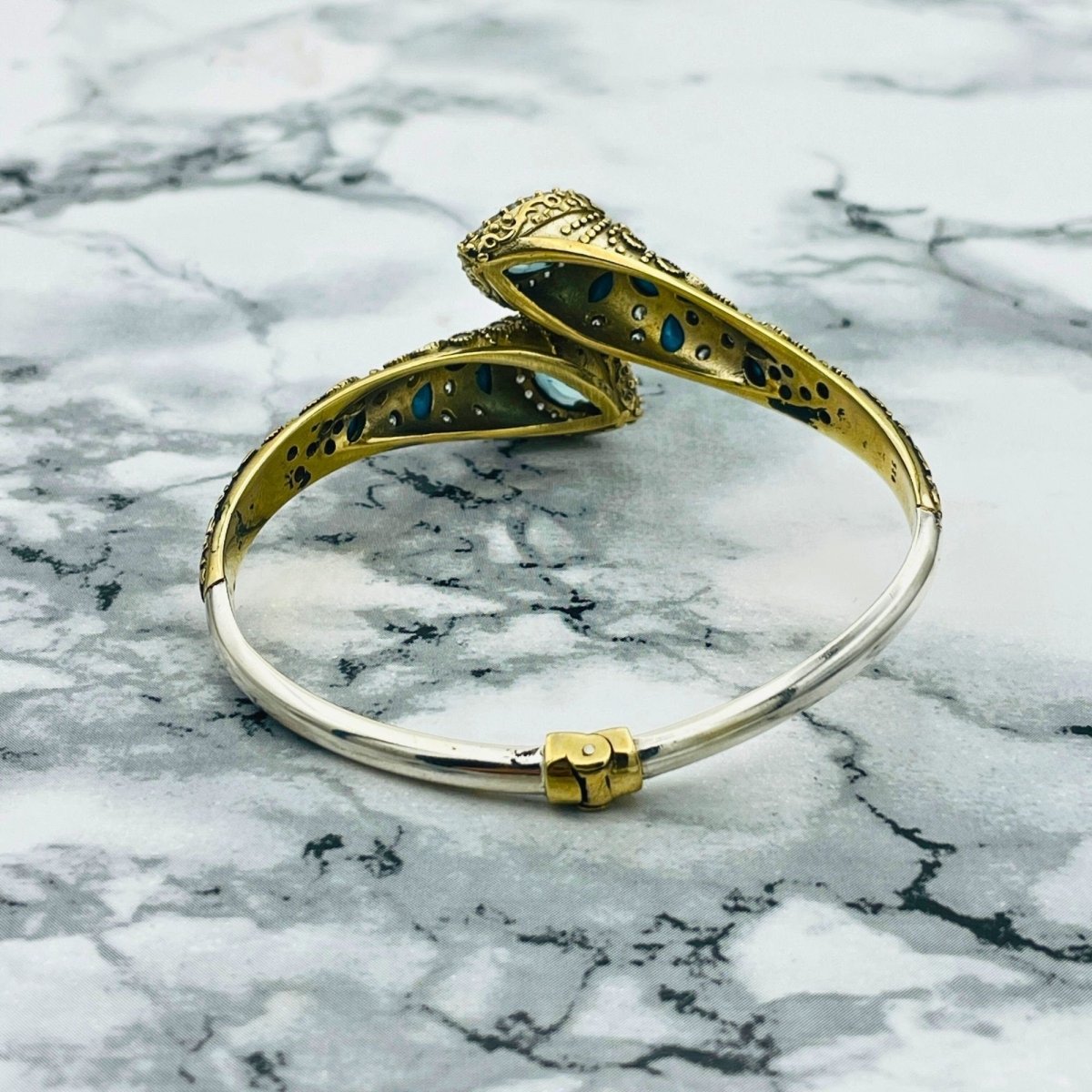 مجوهرات إسطنبول | سوار فضي عثماني بقطرات الأكوامارين المصنوعة يدويًا