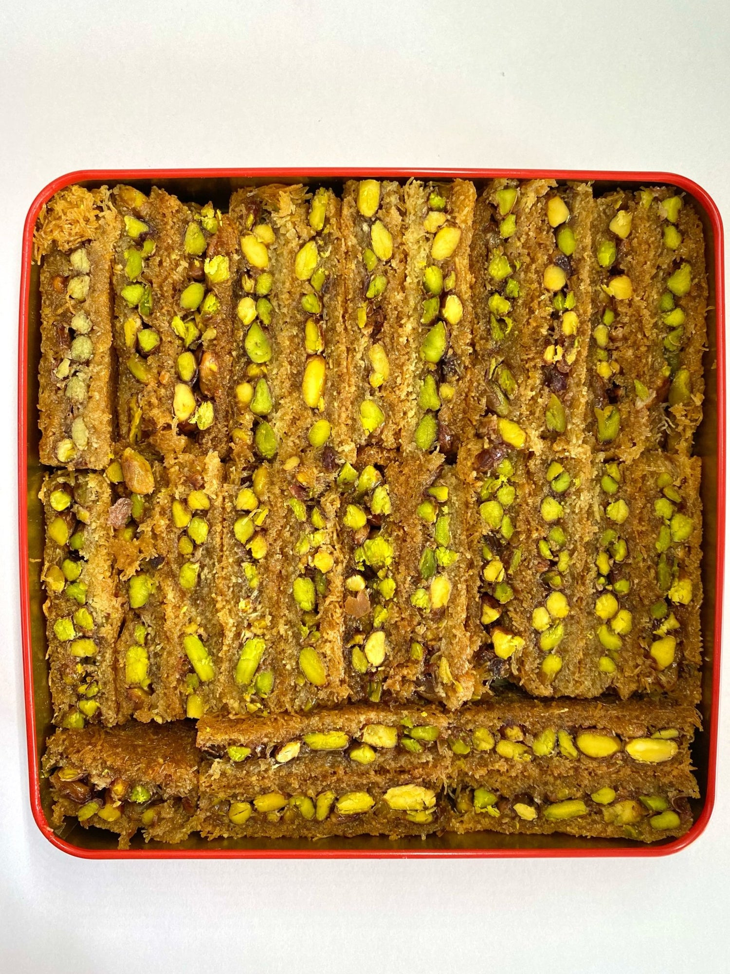 كيفية الاستمتاع: للحصول على أفضل تجربة، قم بتسخين البقلاوة في فرن تقليدي أو فرن محمصة لمدة 5-7 دقائق عند درجة حرارة لا تزيد عن 300°F