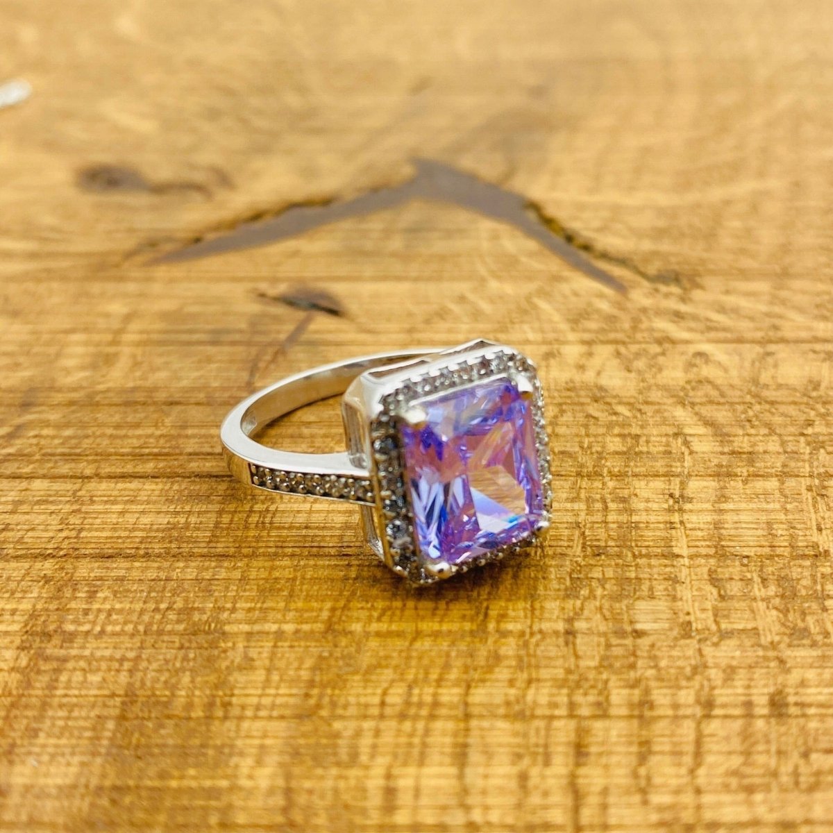 - يشمل قلادة وخاتم وأقراط مزينة بأحجار أميثيست أرجوانية غنية.