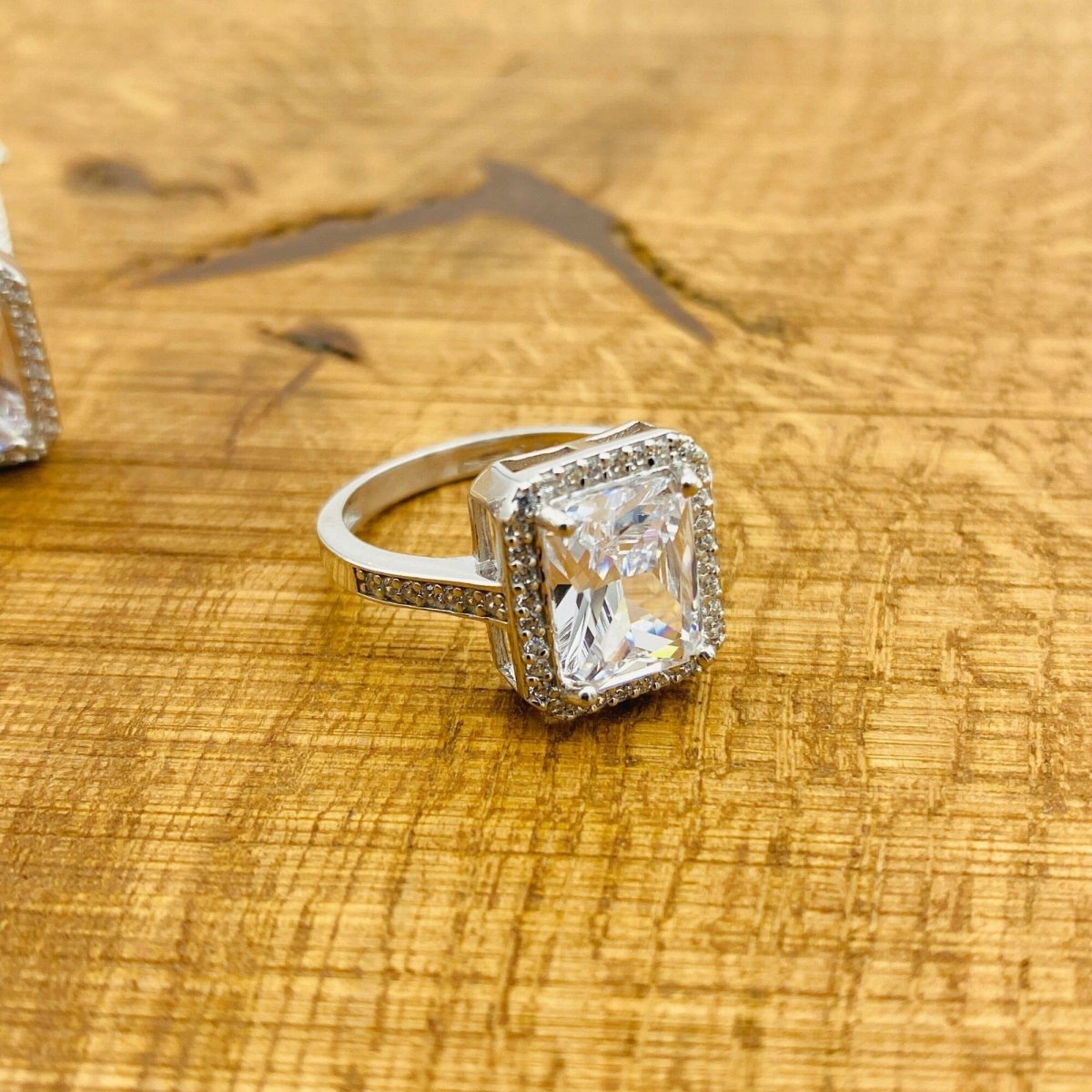 - يشمل خاتمًا وقلادة وأقراطًا بحجارة زركون بيضاء متألقة.