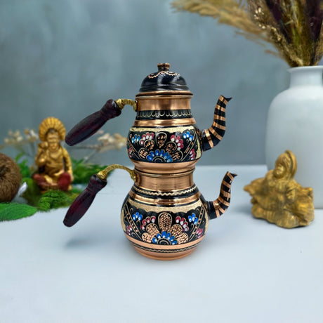 لافينا | إبريق شاي تركي مزدوج من النحاس بتصميم أرضروم