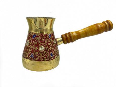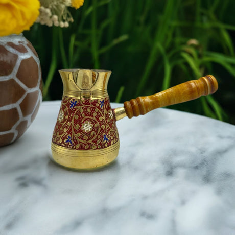 لافينا | إبريق قهوة تركي من البرونز الأحمر بمقبض خشبي تصميم هندي (11 سم)