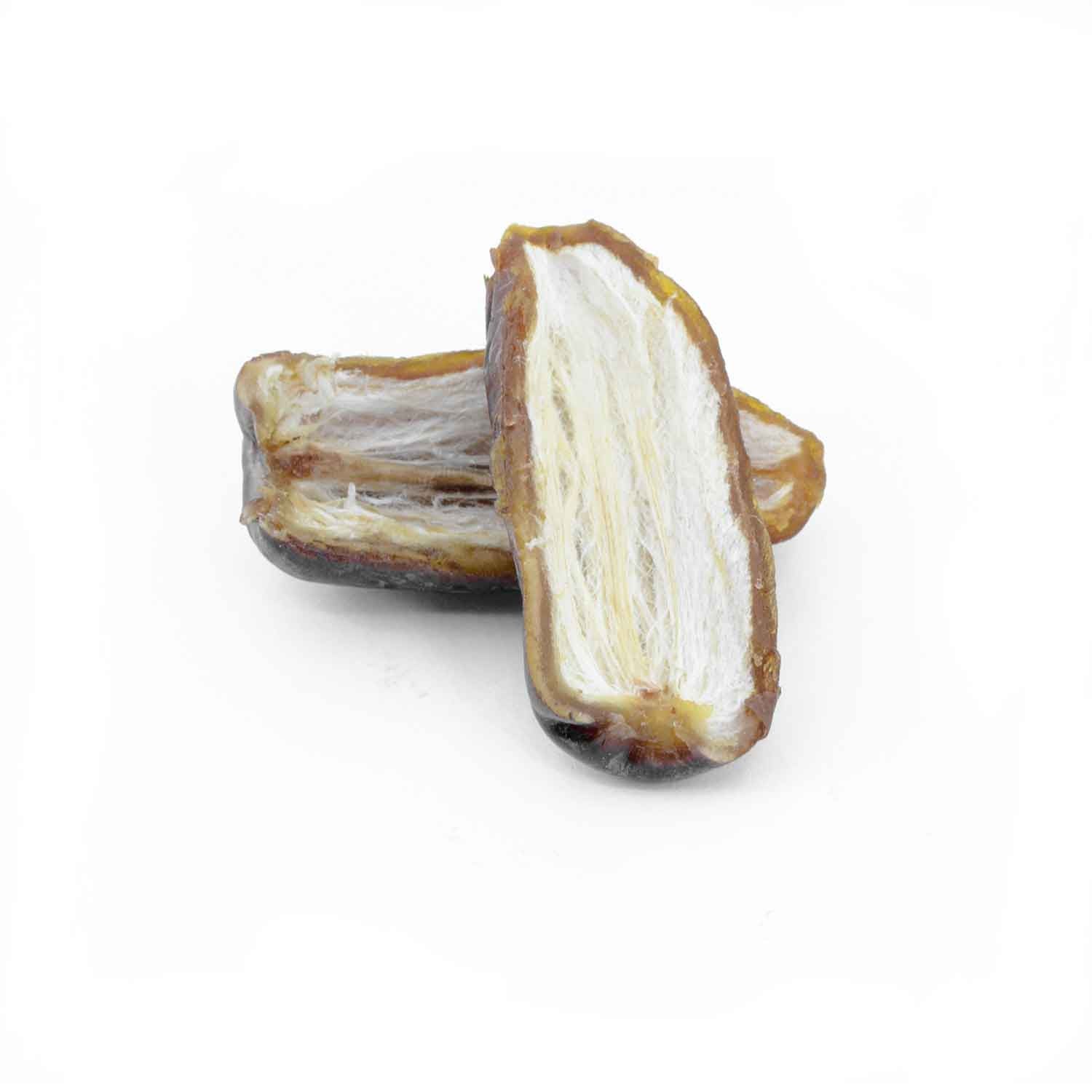 له رائحة مميزة. تتميز تمور العنبر بتركيبة إسفنجية ورائحة مميزة وتحتوي على أعلى نسبة من الألياف بين جميع أنواع التمور. إنها غالبًا ما يُفضل من قبل الدايتيرز والرياضيين بسبب الألياف العالية ومحتواه الغذائي الرائع.