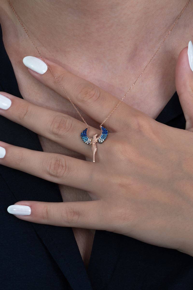 تاكي | قلادة فضية لعناق الزوجين بحجر أزرق وأجنحة مايكل أنجل