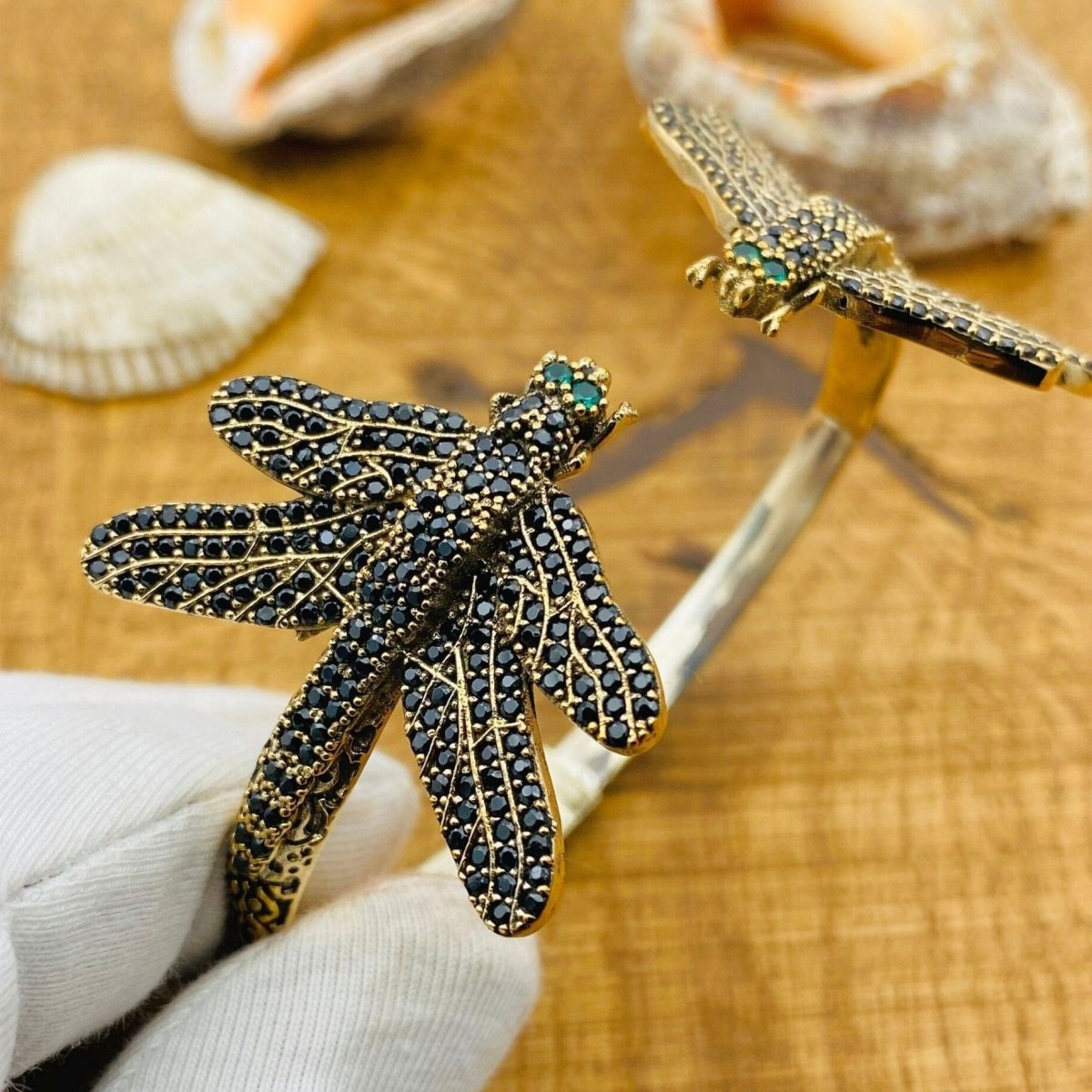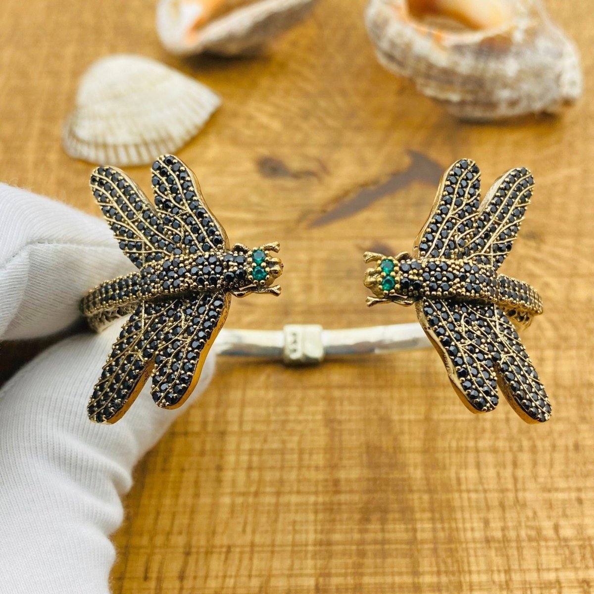 مجوهرات تركية يدوية الصنعهذه الأنيقة سوار حجر العقيق الأسود تتميز بتصميم فراشة حيواني، مصنوعة من فضة استرلينية 925. هدية مثالية لها.