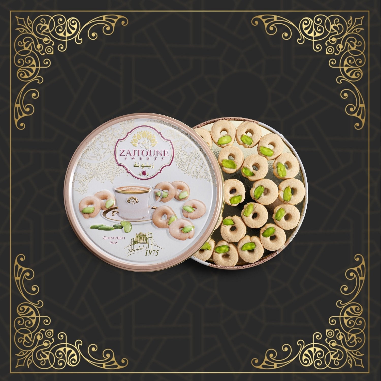 غريبة، والمعروفة أيضًا باسم قُرَابِيَة أو غُرَيِّبَة، هي بسكويت تقليدي شهير في الشرق الأوسط وشمال إفريقيا. يتم خلط المكونات معًا لتشكيل عجينة ناعمة تُشكّل على شكل كرات صغيرة أو أهِلّة قبل الخبز. البسكويت هش ومفتت، وله قوام زبدي يذوب في الفم. غالبًا ما تُقدّم الغريبة خلال المناسبات الخاصة والأعياد، وهي حلوى محبوبة في العديد من البلدان في جميع أنحاء المنطقة.